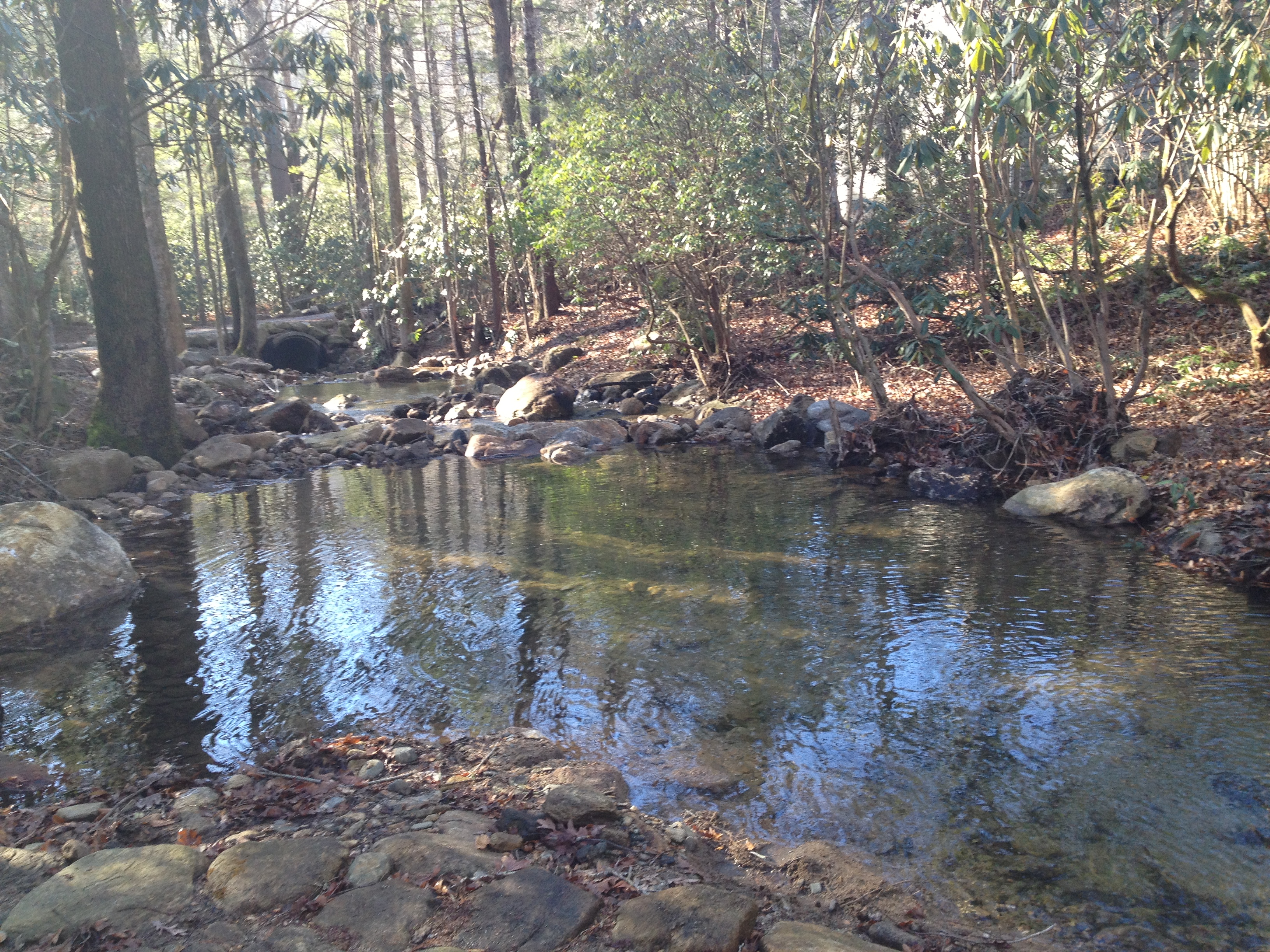 Swimming holes, rivulets, and river rills; nature-carved stone chairs and proud island rocks—it took a while and it took brawn, but the flood damage has been softened and become people-friendly once again. It’s still a mighty work in progress; we still need to find the perfect stepping stones for the refurbished river bank, and fill in here and there with whatever will thrive (and survive) and be beautiful in the eye of the beholder in what can be an unpredictable climate….but hey, Rome wasn’t built in a day—and neither was River Rill! Suffice it to say that today—on this beautiful SUNNY WARM winter’s day, I can dash down the steps and splash into the ice-cold water iffen I so wish to do. That, in itself is progress; that, in itself, is something to celebrate! Champagne on a river rock in a January river, anyone? Bring out the faded old Oriental rug and the vintage flutes—the water will do the chilling!